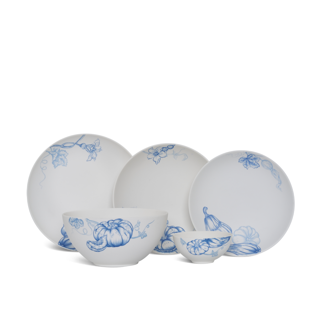 Lấy ý tưởng từ những hình ảnh của vườn quê thân thuộc, Vườn nhà tái hiện sống động bức tranh khung cảnh khu vườn quê vào mùa đơm hoa, kết trái với vẻ đẹp thân thuộc, mộc mạc và thanh bình. Vườn Nhà tạo điểm nhấn với hình ảnh những quả bí ngô to tròn, những bông hoa đang bung nở được phác họa một cách chân thực, tinh tế. Kỹ thuật sương mờ đầy kỳ công trên nền sứ ngà ấm áp và sang trọng, là cách những nghệ nhân Minh Long tạo điểm nhấn khác biệt và mang đến sự đột phá mới lạ, độc đáo cho bộ sản phẩm.