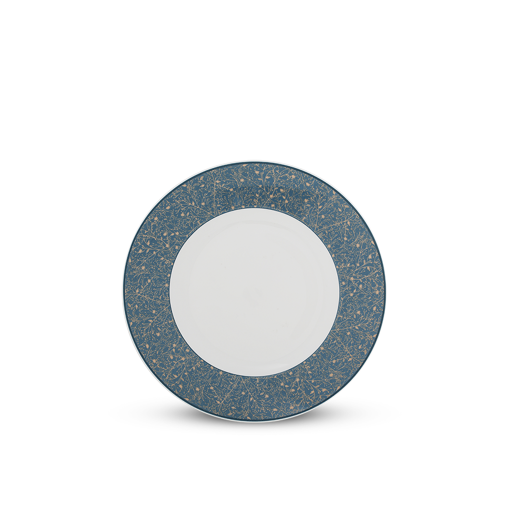 - Họa tiết “Diệp Lục” trang nhã, tựa thiên nhiên: Vành dĩa được tô điểm bằng họa tiết cành lá mảnh mai màu vàng ánh kim nổi bật trên nền xanh đậm, tạo cảm giác nhẹ nhàng, thanh lịch và gần gũi với thiên nhiên.