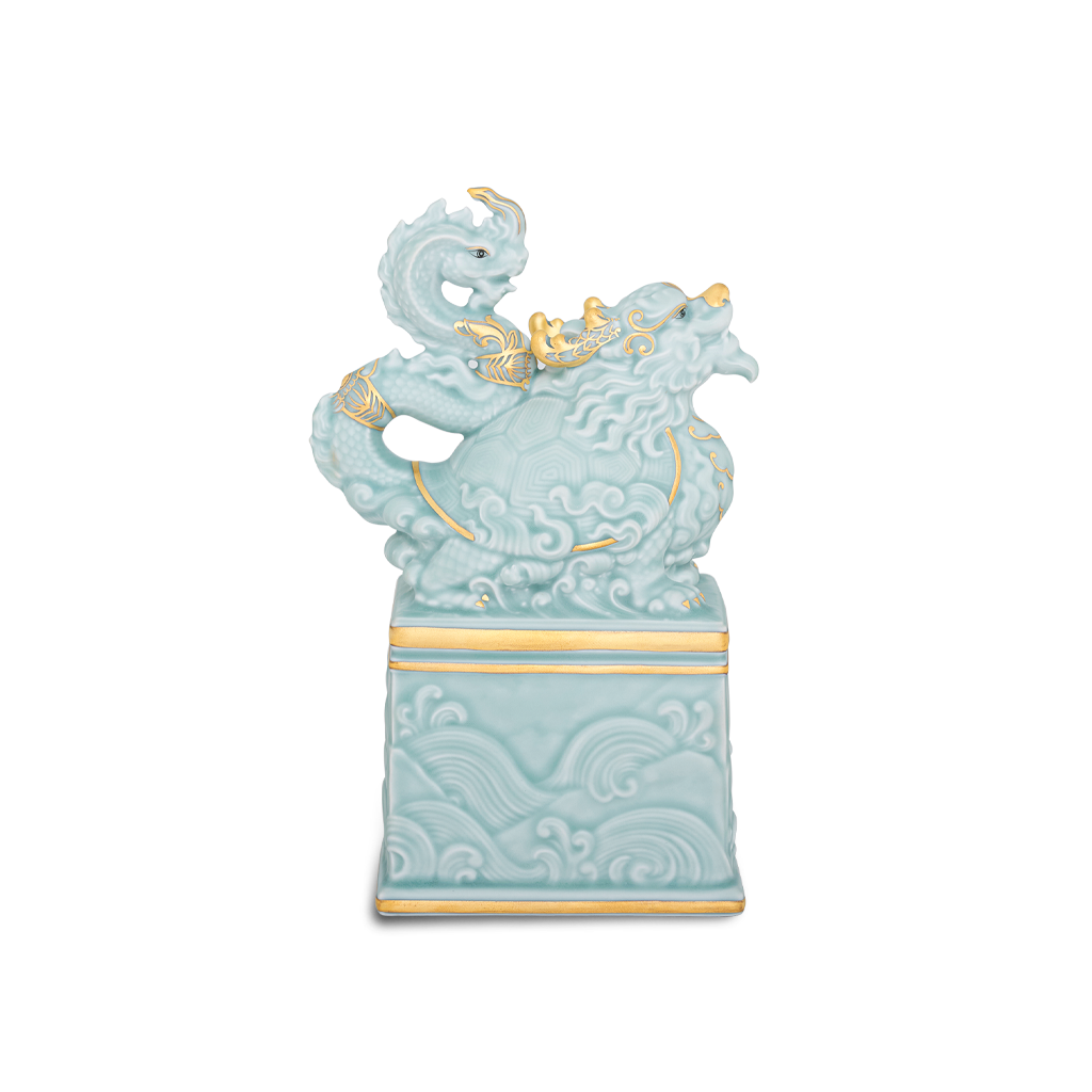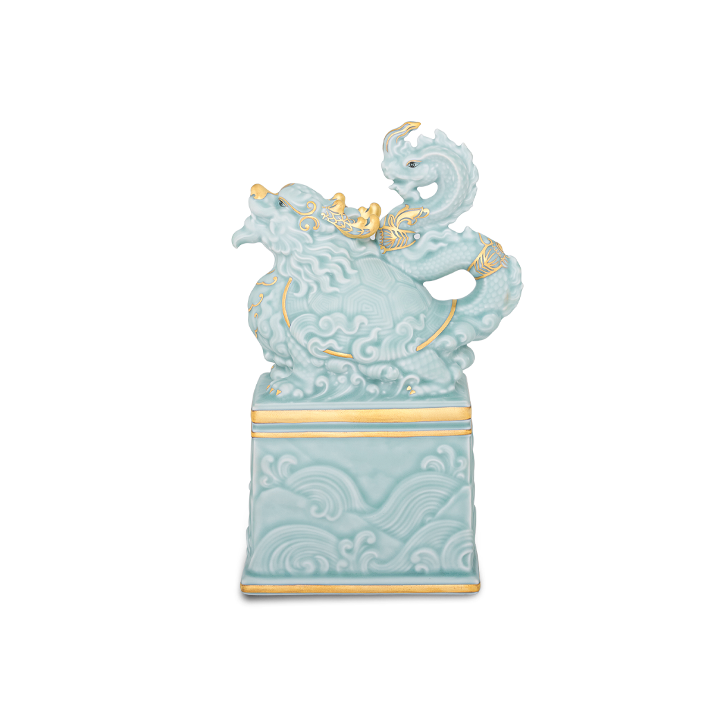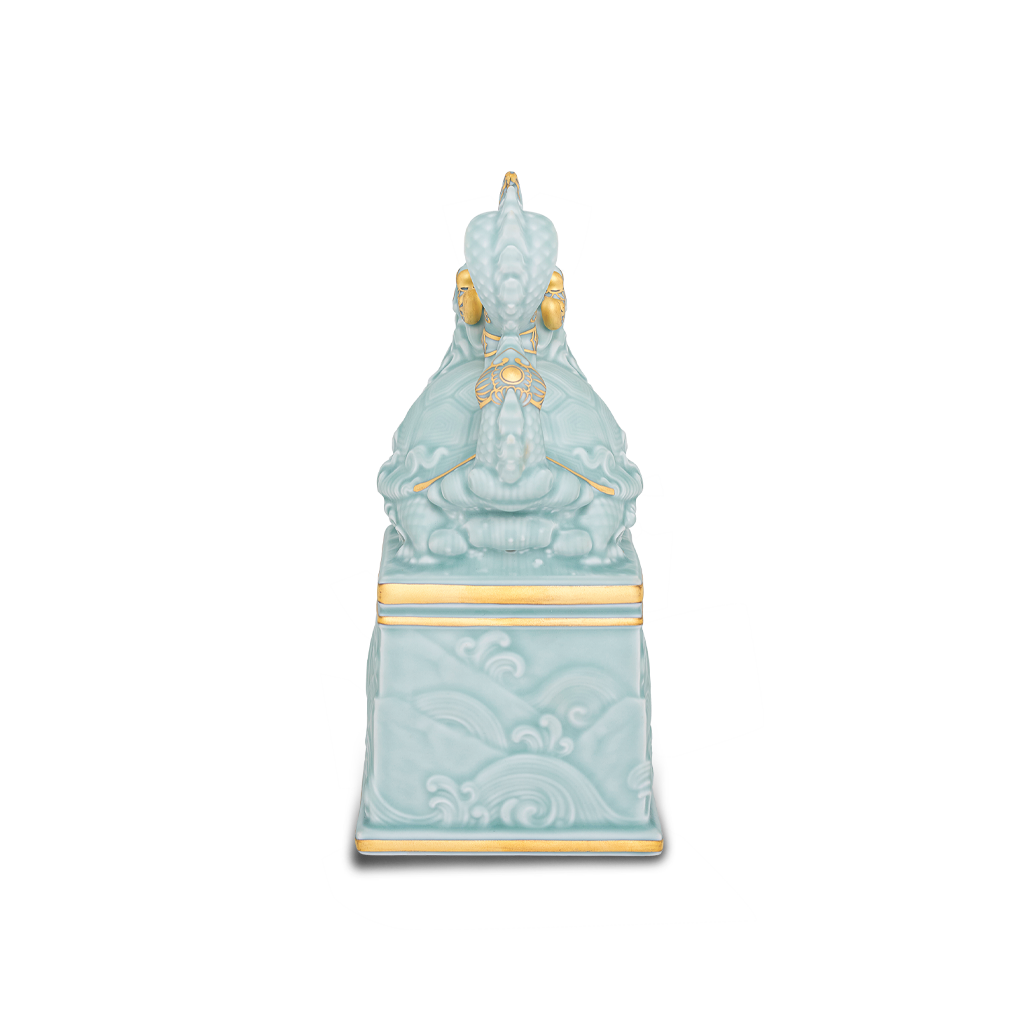 - Tượng Bảo Hợp Thái Hòa được chế tác tinh tế, mỗi chi tiết đều toát ra trạng thái cân bằng tối thượng mà con người luôn hướng tới. Vị thế uy nghi, vững chãi của Rùa kết hợp với thân hình uyển chuyển của Rắn, trong dáng vẻ nhẹ nhàng trên sóng nước, tạo nên một tổng thể đầy sinh khí. Ánh mắt sáng ngời và nụ cười hiền hòa của linh vật không chỉ nhìn thấu mọi chuyển biến để hóa giải, mà còn phát ra nguồn sáng ấm áp, tạo cảm giác gần gũi, an lành, bảo vệ. Các chi tiết vàng 24k góp phần tôn lên sự cao quý và thịnh vượng.