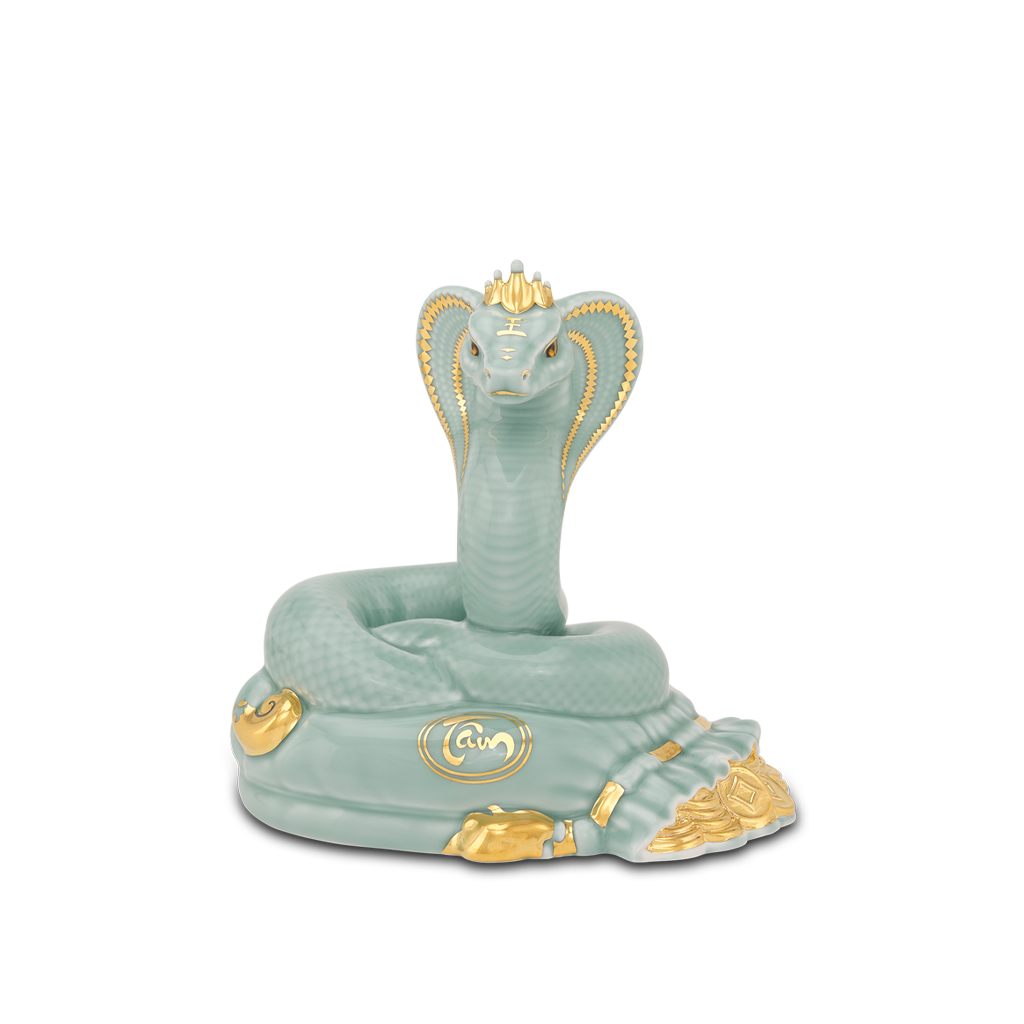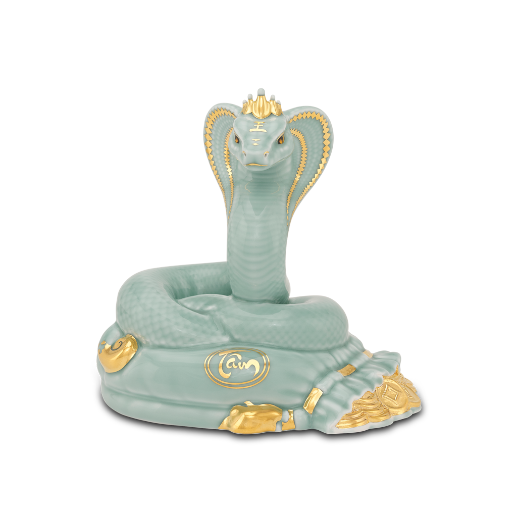 Tượng Rắn Thanh Xà – Men Ngọc (bóng) là tác phẩm gốm sứ cao cấp kết hợp hài hòa giữa nghệ thuật truyền thống và phong thủy hiện đại. Hình tượng rắn biểu trưng cho trí tuệ, sự linh hoạt và khả năng thích nghi, phủ men ngọc bóng tạo vẻ đẹp thanh thoát, sang trọng. Sản phẩm mang ý nghĩa phong thủy tích cực, giúp xua đuổi năng lượng xấu và tăng cường sự tập trung